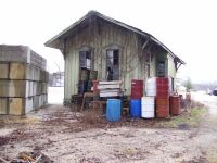 The depot at Elliston, circa December 2006. Left: The east wall of the depot. The road in the foreground would be on the right of way of the former E&I line. Right: North wall of the depot. E&I right of way was to the left.