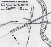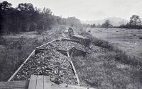 In 1902 the Monon leased rights over the Indianapolis Southern Railway's track between Switz City and Victoria. Pictures is CI&L locomotive #28 derailed between Switz City and Linton. The derailment was caused by a broken rail.