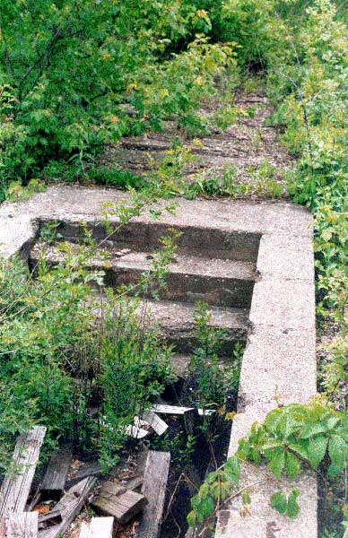 The steps that once went down into the inspection pit. Mike said that the rails are still visible in either side of the pit. Mike Aufderheide photo.