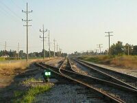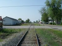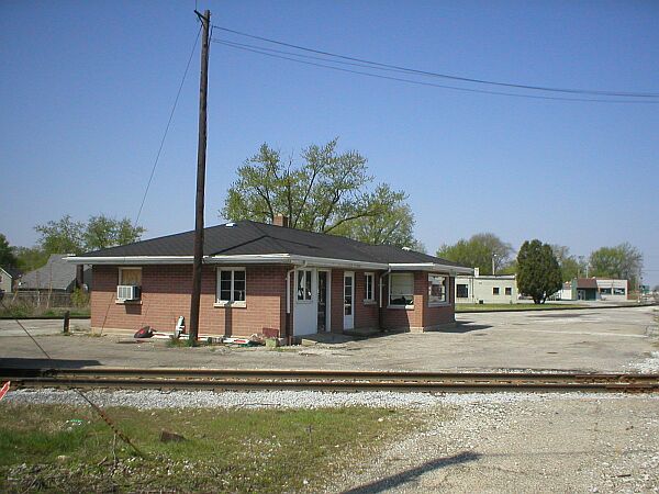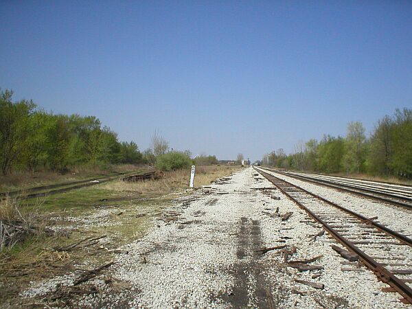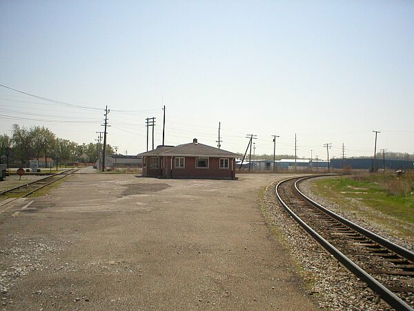 Monon Indiana 2003, looking at the west side of the depot. The mainline curves south and heads to Lafayette. Line to the left of the photo was the old Indianapolis line.