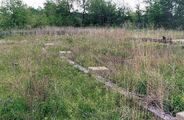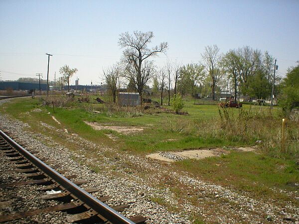 Left: April 2003. This is what remains of the yard shown above. Right, another view of the same area. You are looking to the southwest in this picture. Not much left of what at one time was an important part of the Monon and the town.