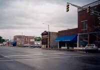The Town of Monon, Business District, circa 2001. Left: Market Street (Highway 421) looking southwest. Right: Former Monon State Bank building. Date on the building is 1912.