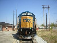 Left: Monon Creek bridge. Looking north along the mainline. CSX GP-15-1 stands on the old Michigan City branch at the depot. Right: Up close and personal with the engine. Too bad it wasn't running. Always wanted to drive one of these.