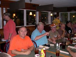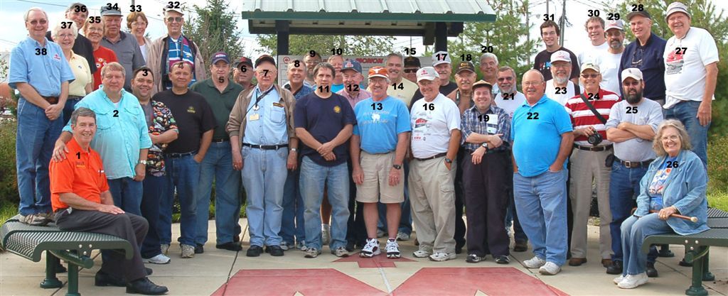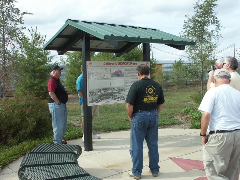 Official Wrap Up Page Pictures from the 2009 Annual Meeting and Convention. Friday, September 25, 2009 Before The Storm, WHQ Left: Convention Chairman Tom Rankin waiting for the crowd. Left: Outside WHQ waiting the arrival of a northbound. Right: Nice of CSX to have a freight pass by Creekside Pre-Convention Dinner Left: Creekside informal dinner. Kevin Black Ops Heggi looks like he has things well in hand, or is looking for mayo. Left: Bob Wheeler and wife converse during the pre-registration get together. Right: Steve Long mugs for the camera. Left: Larry O'Connor decides on what he would like. Right: Chuck Hart waits, while Larry still contemplates. Everyone is having a good time. Left: Tom Rankin smiles for the camera. Right: The Nultons enjoying the gathering. Left: Ron Marquardt talks with Pete Pedigo and Kevin Heggi. Right: Tom Kepshire ponders whether he left the water running at home. Left: Tom Kepshire responding to a question by Frank. Right: Detente! WHQ Registration Steve Long arrives at WHQ to look around. (He raided the snacks table.) Saturday, September 26, 2009 2009 Bus Tour Jim Davis photographs, unless otherwise noted. Left: Early Saturday morning and the fog covers WHQ. Right: Still pretty foggy. Left and Right: The early pert of the tour was hampered by fog. These pictures taken at Crawfordsville. Left: Joe C keeps hoping a headlight, attached to a Monon RS2 will appear from out of the fog. Sorry Joe. Right: Signals at Crawfordsville. Arriving at Crawfordsville Electric Light and Power Company. Left: Sign at the Crawfordsville Electric Light and Power Company. Left and Right: Machinery inside the plant. More shots inside the power plant. Yet more equipment. Left: Machinery. Right: Aerial photo of the power plant. More from the power plant Lunch Time At WHQ Left and Right: Lunch on the flat car at World Headquarters. Bus tour participants enjoyed a hot lunch prepared by Pam Rankin. Warren Mitchell photos. Left: "Steve, relax. Tom said there was plenty of time to eat your ice cream, even if this is your third bowl." Nothing beats a passing freight. Tour participants inspect a northbound freight. -Warren Mitchell photo- . Lafayette Junction Southbound CSX action at Lafayette Junction. More Lafayette Junction Lafayette, Big 4 Depot Big Four relocated depot, downtown Lafayette Bus Tour Group Photo. Click on thumbnail to open image with numbers. (1) Cecil Smith (2) Tom Rankin (3) Kevin Heggi (4) Steve Long (5) Larry O'Connor (7) Robert Wheeler