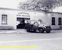 Left: Studebaker Corporation Buildings 30 (1878) and 30A (1890). Located on Lafayette Street south of Building 113 (1946) and north of Buildings 33 (1890), 34 (1890), 35 (1890) and 108 (1942) (All Demolished). Their original use is unknown. During the 1950's and 1960's they housed Plant Protection and the Plant Fire Department. Right: Studebaker Plant Protection Fire Department. Exact date of this photo is unknown. It is believed that is is late 1950's, early 1960's. The truck is turning north on Lafayette Street. Photo courtesy of the Studebaker National Museum Archives.