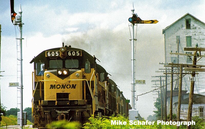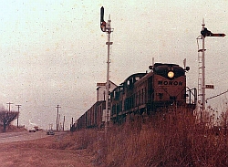 Southbound freight passing the old Cherry Grove elevator, circa 1971. Not long after this photo was taken, the Monon merged into the L&N.