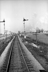 Southbound local splits the signals at Cherry Grove, Indiana. Unknown date.