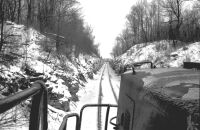 Left and Right: Spring Cave Hill. Curves near top of Spring Cave hill, taken from cab of northbound train, looking north. Circa late 1960's, early 1970's.