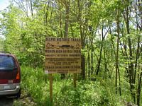 Left: The Milroy Cabin site has been added to the Delphi Historic Trails. This trail runs from the cabin site to the High Bridge. Right: Historic Landmark plaque at the Milroy Cabin site. There is now a trail to the monument pictured above. Back in 2004 we had to cut through underbrush to get to the monument.