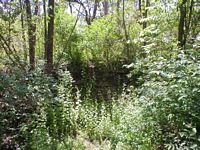 Another mystery associated with the Milroy Sculptures? While looking over the terrain of the embankment, I came upon a place where some excavation had taken place. What focused my interest was the telegraph pole. I wanted to get a closer shot and when I stepped through the brush, I noticed that part of the embankment had been removed. I know that it is hard to see in these photos, but an area about 7 feet wide had, some time ago, been removed. When you stand at the base of the embankment, you note that maybe 12 inches had been removed. It did not look like recent excavation. Unless you are right on top of it, you would miss it entirely. Could it be possible that the Milroy Sculptures were found and removed years ago? Interesting, but this location is 100% wrong. The sculptures were never here.