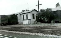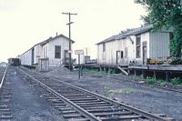 Left: The transfer shed for LCL (Less than Carload) freight. This was part of the west yard. Date of picture unknown. Mahlon Eberhard photo, courtsey of Mahlon Eberhard and Ken Weller. Right: Same transfer shed in 1967. Looks just slightly more time worn. Tim Swan photo.