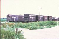 More Monon freight cars sitting in the yard. This is probably the west yard. It looks like picture was taken from the enginehouse, looking towards the northeast. Tim Swan photo.
