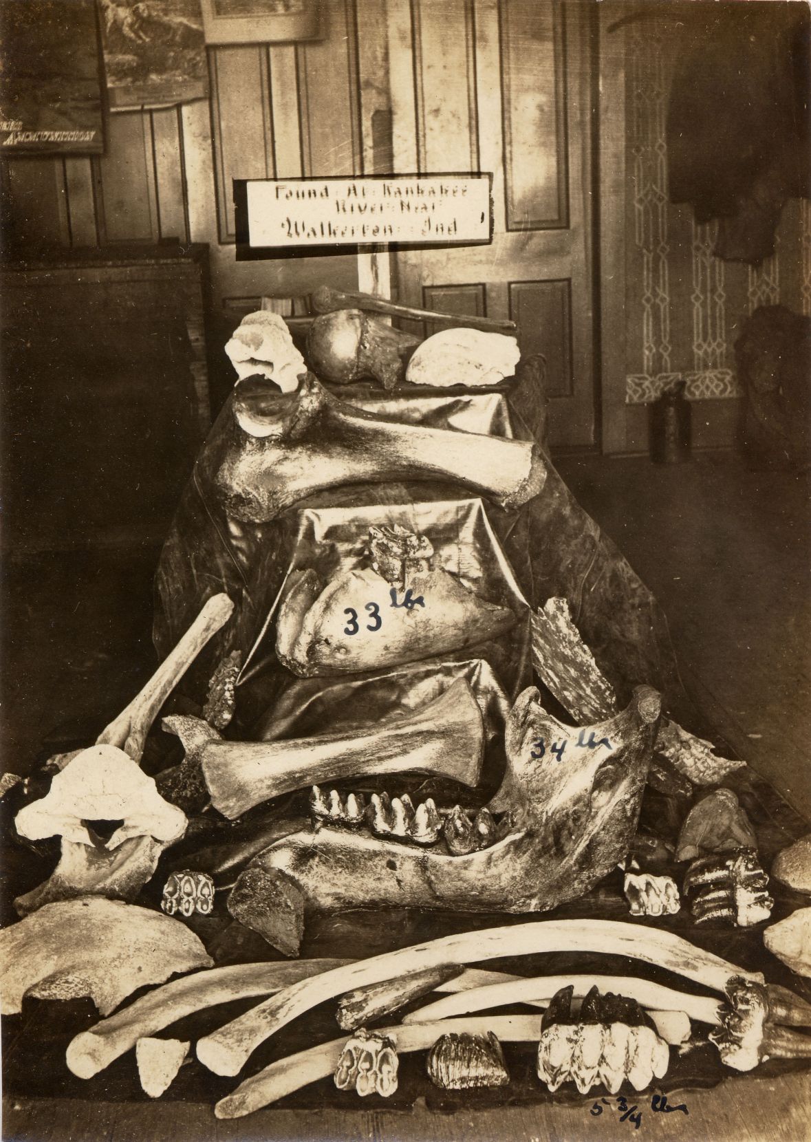 (Photo) Mastodon Bones found near Walkerton. -Walkerton Area Historical Society Photo- During the straightening of the river in the early part of this century, bones of ancient animals were discovered, including mastodon, saber-toothed tiger, giant beaver, and a type of large elk, all dug up by the excavating machinery. In all its twisting and turning, the river was nearly 200 miles long, but today, after the dredging and straightening, the length is about 120 miles. It meets the Des Plaines River in Grundy County, Illinois, to form the Illinois River.