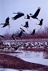 (photo) Abundent water fowl was present in the marsh. -Michigan City Library Collection- Indian Island near the Kankakee was the Indians' camping ground. During the hunting season of the fur-bearing animals, from early autumn to late in the spring, this island was their home. Around the first of May they would pack their hides, furs, and with their squaws and children they would start for the Lake Michigan region to meet the fur traders. About one mile up the river from Indian Island was another Indian camp ground, known as Indian Garden. The Indians in selecting a camp ground always located on a point of high land which was well fortified and could not be invaded by the enemy.