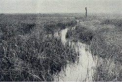 (Photo) Looking out over the marsh and marshgrass in LaPorte County. This marshgrass was harvested by the early ice industry for insulation. -Michigan City Library Collection- While some of the Indians appear to have settled more or less permanently on the marsh margin or on islands within the marsh or swamp, the majority seem to have migrated back and forth, in summer occupying the marginal moraine or Lake Michigan plain, and in winter retiring to the swamp (or marsh) island,