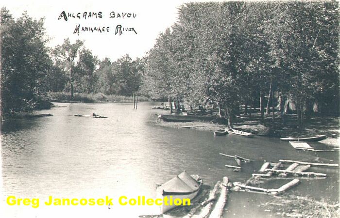 The park was situated on a bayou that connected the old Kankakee River and former a lagoon on which the Ahlgrim property fronted. Ahlgrim also made wooden boats which he would rent and his sons hired themselves out as pushers to propel the boats through the twists and turns of the river. There were two club houses for his guests, which included the owner of the Bissell Carpet Sweeper factory and other wealthy men.