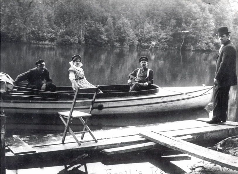 Photos (Left) Motor launch pulls out from the slip near the Water Valley depot. This boat was owned by the Ahlgrim's family. (Right) Children playing on the landing at Ahlgrim Park. -Marc Buhrmester Collection-