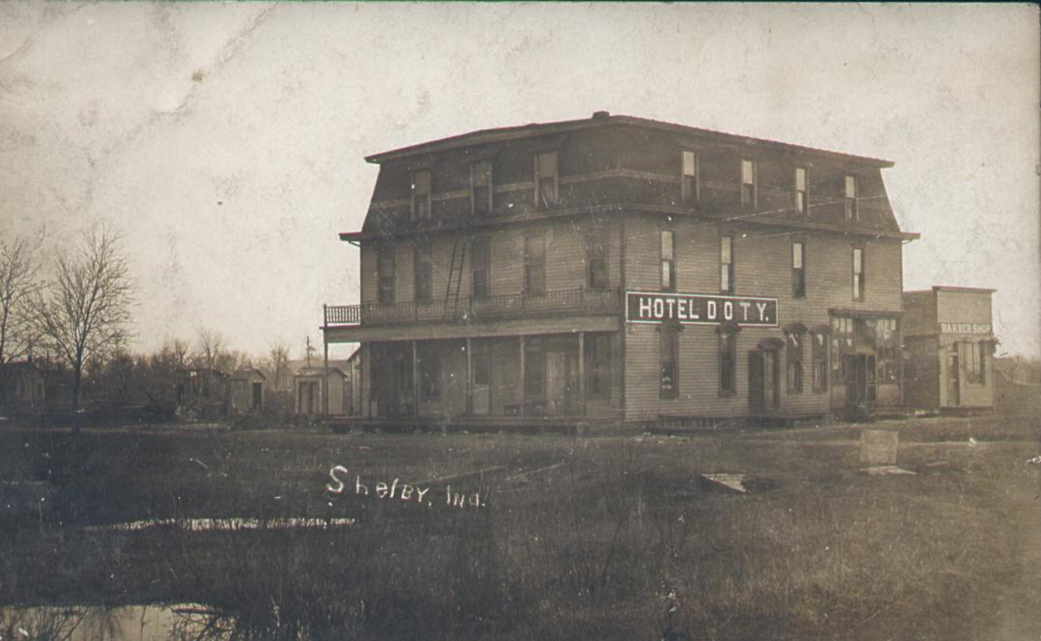 Shelby Indiana was another place that sportsmen stayed while hunting and fishing the Kankakee. Visitors to the Kankakee could enjoy not only the hunting clubs, but several hotels in Shelby, including the Doty, Fuller, Sirois, Crocker and the Struble. Although crude and small by today’s standards, in 1900 they were considered top of the line. Records indicate that at one time 75 passengers a day were getting on and off passenger trains at Shelby. Photo Right: The Hotel Doty, Shelby, Indiana. Lowell Library Collection.