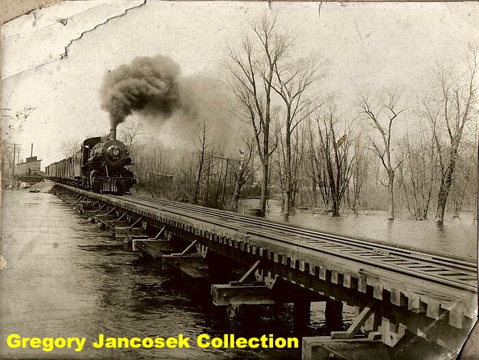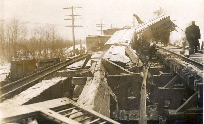 Photos: Davis Station on the PRR. This was the name where the PRR crossed the Kankakee. (Left) The Davis Station depot. (Right) 1910 and a derailment takes out part of the bridge over the Kankakee.