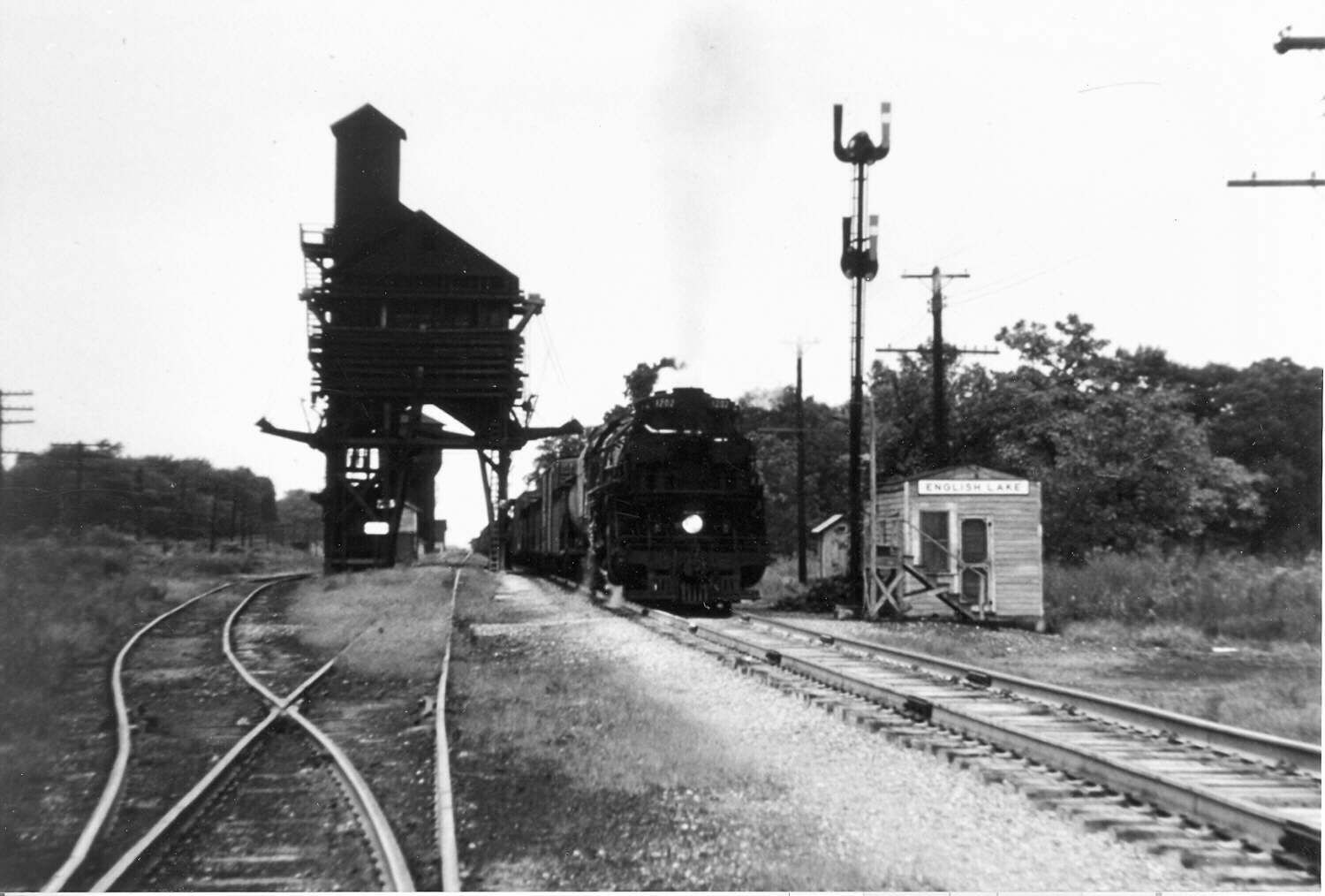 Photos: (Left) English Lake depot. The C&O and the Pennsylvania shared this depot. (Right) Coaling tower on the C&O. South bound freight. -Sandy Goodrick Photo-