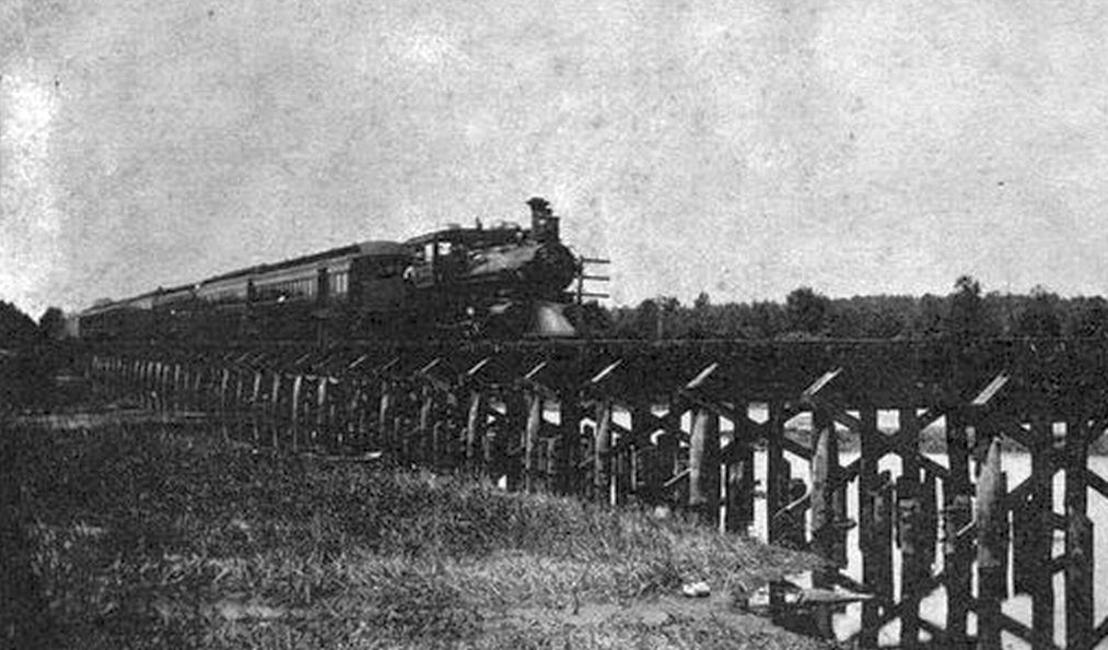 The Chicago, Indianapolis and Louisville Railroad served the Kankakee Marsh at two locations. The railroad was the first to arrive in south Lake County about 1882, but it arrived even earlier on the Michigan City line at Wilders/ Riverside, in 1852. Lew Wallace rode the CI&L between his home in Crawfordsville to Riverside many times. Other dignitaries and celebrities arrived and departed from the depots in Water Valley, Shelby and Riverside. The original railroad bridge at Water Valley was 150 feet in length. This bridge was replaced in the 1950's. The Ahlgrim Family provided motor launch service between the Water Valley depot and the various clubs and camps along the river.