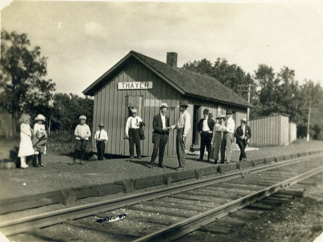 Photos: (Left) The Monon/ NYC depot at Shelby. This depot was built in 1905. -David Ryunon Collection- (Right) Passenger makes a stop at Thayer, Indiana. Thayer was south of the Kankakee. Many guests of the Diana Club arrived here. -Gerald Born Collection-