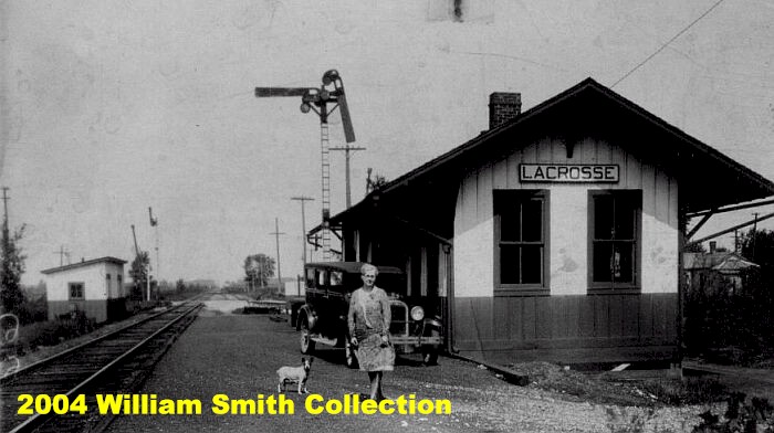 Photos: (Left) LaCrosse Indiana was a railroad town. Served by 5 railroads and 4 depots. Pictured is long time Agent Bessie Smith at the Monon depot. -William Smith Collection- (Right) Wilders, north of the Kankakee. At one time the Monon and Erie maintained a small depot here. The Chicago, Attica and Southern also passed through Wilders.