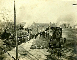 Photos: Left: Steam #269 at Attica, 1940. Louis W. Schaller photograph. Right: First freight on the CAS, 1922. Wade Frash Collection.