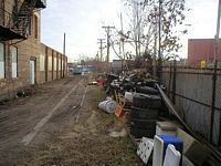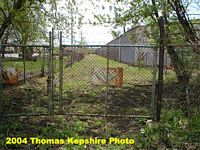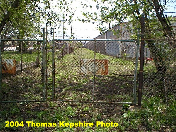 December 31, 2003. Left: Another view of what remains of the Indiana Northern spur that once serviced the plant. You are looking to the north, between buildings. Right: This pictures was taken from between the buildings and you are looking back to the south. I would like to express my sincere thanks to Mr. Werntz, of Werntz Supply, for allowing me to photograph on the company property.