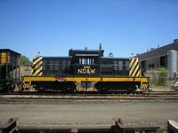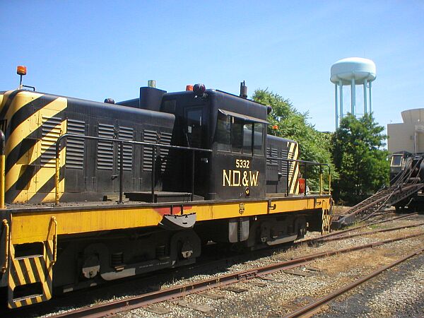 Left: Motive power. Notre Dame & Western locomotive 5332, built by the Porter Locomotive Works. Right: Another shot of locomotive 5332. Photos taken June 22, 2003.