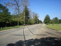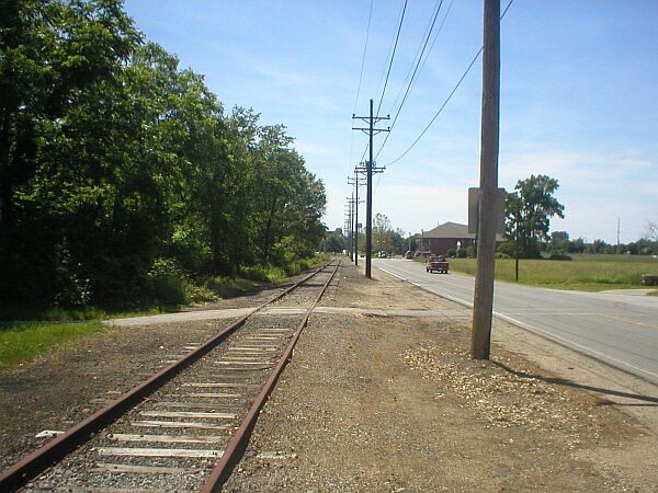 Left: ND&W right of way. Looking towards the west. The right of way is just south of Douglas Road. Right: The tracks cross Douglas Road, where they entered the coal storage area. I have heard serveral people claim this is where the ND&W really started, however, I have nothing "official."