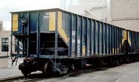 Left: Hopper Car #2, September 1979. Right: Hopper Car # 540821, October 8, 2002 at the Power Plant. Dick Leonhardt Photos, courtsey of George Elwood.