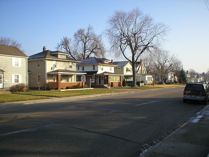Left: The caption on this picture says this picture was taken June 1940 on Lincolnway West. The sign on the car says "Miami Street." It is obvious that the car is just starting the return trip. Olive street was the end of the route. The church visible in the background is the Epworth Methodist Church, Lincolnway and Olive Street. Right: 2004 Photo coming soon.