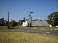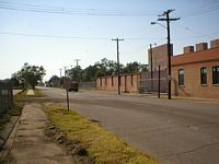 Left: Northern Indiana Railroad, Bendix Line, August 13, 1938. This car is westbound on Circle Street. M.D. McCarter Photograph. Right: Same location, circa 2003. Today as back then Adams Engineering is on the west side of the street.