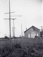 Northern Indiana Railroad, abandoned sub-stations. Left: Lydick Indiana sub-station and depot, circa 1934 after the line was abandoned and the tracks removed. Right: Rolling Prairie sub-station and depot, looking down the abandoned right of way. Both, M.D. McCarter Photographs.
