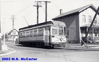 Left: Northern Indiana Railroad, Bendix Line, August 13, 1938. This car is northbound on Meade Street at Rogers. M.D. McCarter Photograph. Right: Same location, circa 2003. Today Kennedy Academy occupies the area to the east of the old right of way.