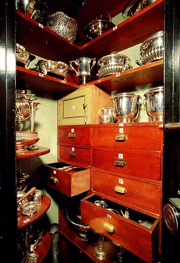 The household staff were a vital part of life at Copshaholm. The Butler's Pantry contained the dishes and glassware used by the Olivers and guests. The sink was made of German silver, a soft alloy of copper, nickle and zinc, which reduced the risk of breaking the dishes during washing. The walk-in, air tight vault, still contains all the Oliver Family silver.
