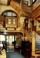 Once inside, you enter the Main Hall with it's grand stairways. On September 30, 1916 this Main Hall was cleared and filled with flowers. The occasion? 1000 guest enjoyed a buffet supper, in the dining room and dancing in the ballroom in celebration of the marriage of Gertrude Oliver and Charles Frederick Cunningham.