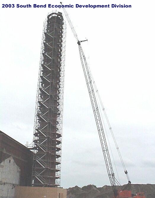 The scaffolding surrounding the smokestack and accessory crane. We hope to update the progress on the redevelopment of the Oliver Industrial Park. Much as we will miss the old plant, this project is vital to economic development and the future of our city.