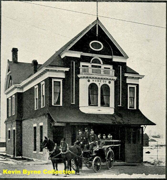 NEW 12-24-2004 Left: South Bend Station 7, Date unknown. The image originally was published in the book Souvenir of South Bend, 1905, L. H. Nelson Co., Portland, Maine. Courtesy of Kevin Byrne, Washington DC Firefighter. Right: South Bend Station Seven. Opened in 1904, Station Seven was located on north Notre Dame Avenue and was decomissioned in 1968.
