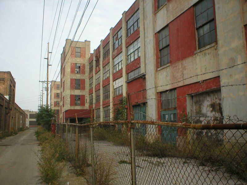 Studebaker Corporation Buildings 33 (1890), 34 (1890), 35 (1890) and 108 (1942). These building were the originally part of the wagon manfacturing . Building 108 (right side of photo) was the Avanti Doll Up area. These building sat south of Building 30 and 30A, west side of Lafayette Street. They were some of the first structures to be demolished.