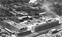 Studebaker Corporation Building 72 (1917-18). Motor machining and assembly. During the early 1950's they produced 1500 engines a day. Today it houses South Bend Lathe. Photo looking east from Sample and Chapin Street.