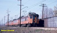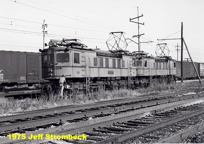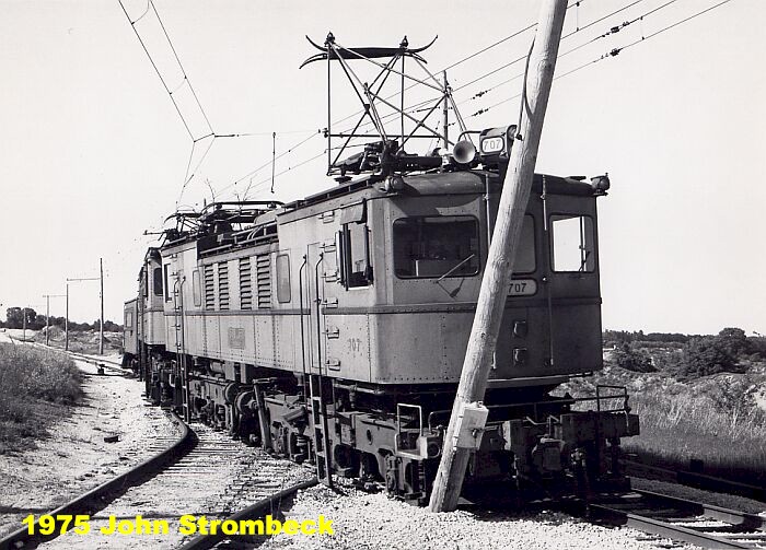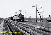 Left: June 8, 1975, freight locomotive derailment at a turnout north of Lincolnway West and Bendix Drive. Today this track serves the South Shore Passenger station at South Bend Regional Airport. There is no longer freight operations on it. Right: For many years the South Shore ran in the streets on Bendix Drive. April 6, 1975 find a local freight southbound. Today the tracks run along the east side of Bendix Drive.