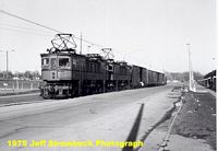 February 15, 1988, westbound freight with Little Joe #803 in the lead. Train is just west of the Grandview crossing.