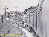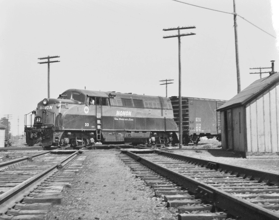 Left: Local transfer freight with BL2 #33 at State Line Junction, 1959. Unknown photographer.