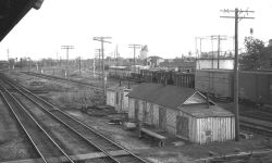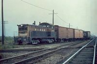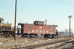 Monon switcher and caboose at State Line, early 1960's. The local is coming off the B&O interchange track.-MRHTS Archives-