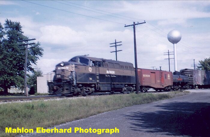 Monon F3 82A on Train 5 at Monon, Indiana.