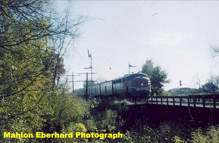 Monon, Indiana 1950's. Northbound #6 starting around the curve