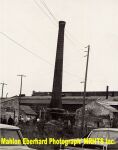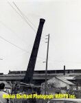Right to left: Series of images showing the demolition of the old smokestack at the Shops.
