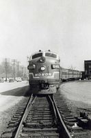 Action at Monon, Indiana 1950's. Arrival of Train #6 with F3 81B on the lead.